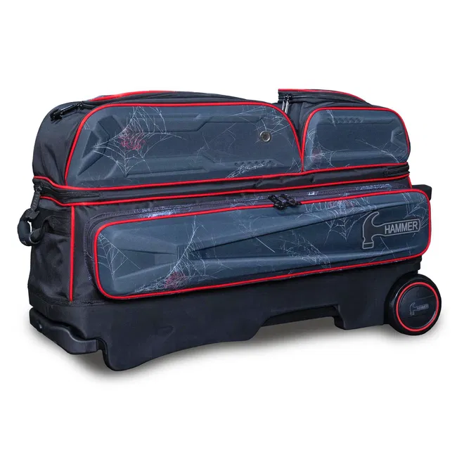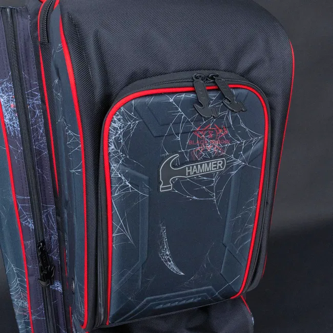 The Limited Edition Hammer Black Widow 3 Ball Triple Roller Bowling Bag delivers the perfect blend of intimidation, durability, and tour-level performance for bowlers who demand more from their gear. Designed with Hammer Tough construction and inspired by the legendary Black Widow line, this bag pairs aggressive styling with rugged reliability built for long league seasons and high-stakes competition. Equipped with ultra-smooth, extra-wide 5-inch wheels, the Black Widow Triple Roller rolls effortlessly through busy bowling centers, over curbs, and across uneven surfaces for a stable, controlled ride. A reinforced frame and premium materials ensure lasting durability, while the spacious main compartment securely holds three bowling balls with protective cushioning to keep your arsenal locked in and ready to strike.