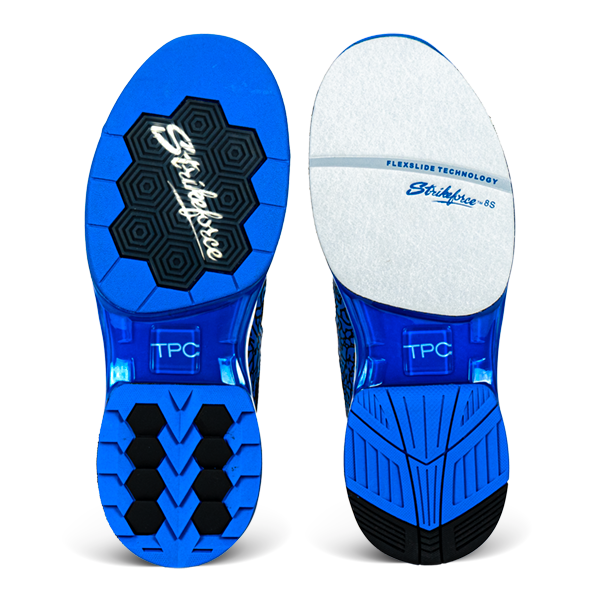 Take your game to the next level with the New KR Strikeforce “The Perfect Collection” TPC Gladiator Men’s High-Performance Bowling Shoes. The Gladiator comes with KR FreeLock Dial Lacing System which is an advanced lacing technology which gives you a secure, consistent fit. The upper is made of a flexible mesh and microfiber blend. New innovative TRI-Sole outsole technology with interchangeable slide pad and heel keeps your slide under control for ultimate shot making. Biomechanically engineered for ultimate comfort and performance with a TPU molded heel stabilizer for added stability and enhanced fit. Included inside both shoes are New Ortholite® High Rebound molded insoles for prolonged comfort and durability. Minimal break in period required. PBA Registered Product. Included parts on slide foot shoe: Genuine Clarino® #8 white microfiber slide pad and #5 graduated rubber heel. Included parts on push foot: T02 rubber push-off sole (fixed) and #2 shark tooth heel. Included in the box are the #10 Grey felt slide pad, #6 Perforated white microfiber slide pad and #7 Black leather heel. Other extras included in the box are TPC branded Dura-Flex shoe covers, a Large TPC branded valuables pouch, TPC Bag tag and TPC Welcome Letter.